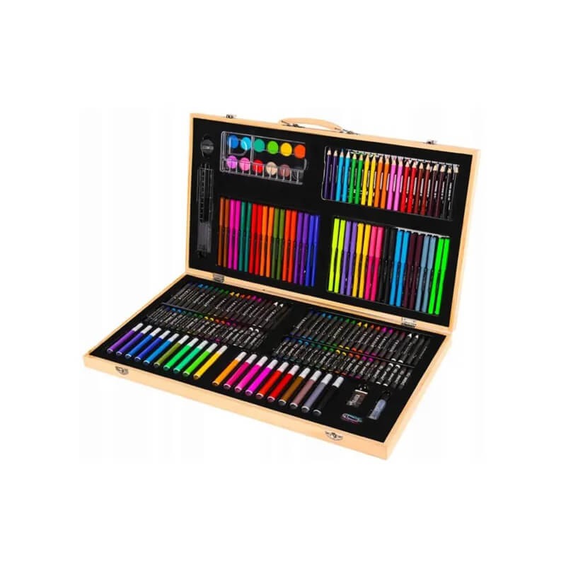 Το σετ περίεχει ξυλομπογιές, μαρκαδόρους, νερομπογιές, παστέλ, πινέλα και άλλα απαραίτητα εργαλεία για ζωγραφική!