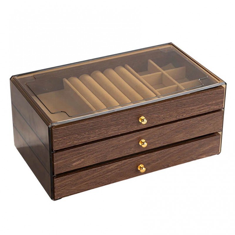 Κουτί κοσμημάτων- μπιζουτιέρα με χρώμα καρυδιάς με 3 επίπεδα για κολιέ, δαχτυλίδια, βραχιόλια και σκουλαρίκια.